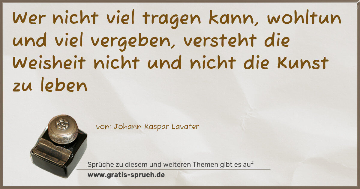 Wer nicht viel tragen kann, wohltun und viel vergeben, versteht die Weisheit nicht und nicht die Kunst zu leben
