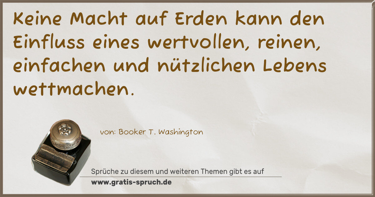Keine Macht auf Erden kann den Einfluss eines wertvollen, reinen, einfachen und nützlichen Lebens wettmachen.