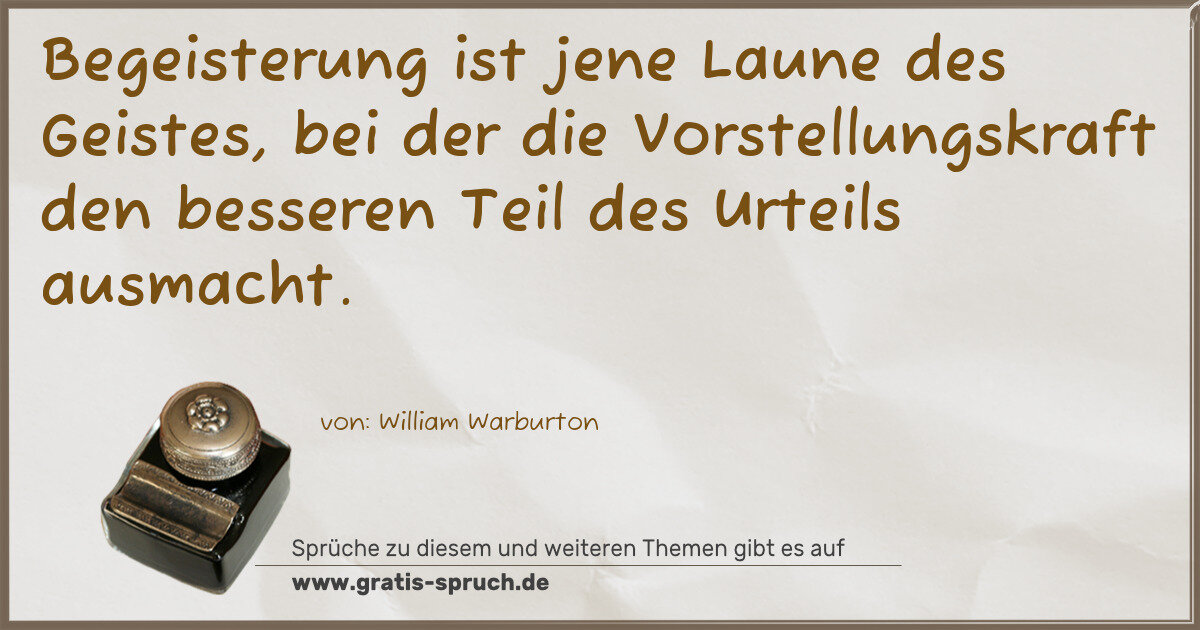 Begeisterung ist jene Laune des Geistes, bei der die Vorstellungskraft den besseren Teil des Urteils ausmacht.