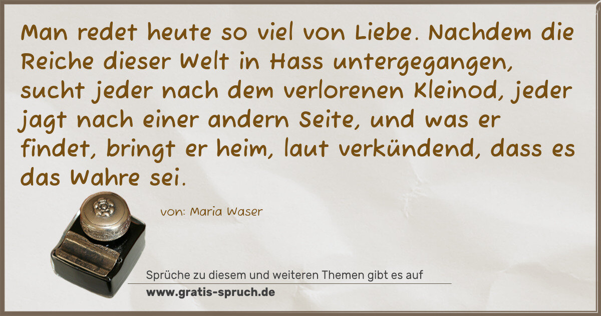 Man redet heute so viel von Liebe. Nachdem die Reiche dieser Welt in Hass untergegangen, sucht jeder nach dem verlorenen Kleinod, jeder jagt nach einer andern Seite, und was er findet, bringt er heim, laut verkündend, dass es das Wahre sei.