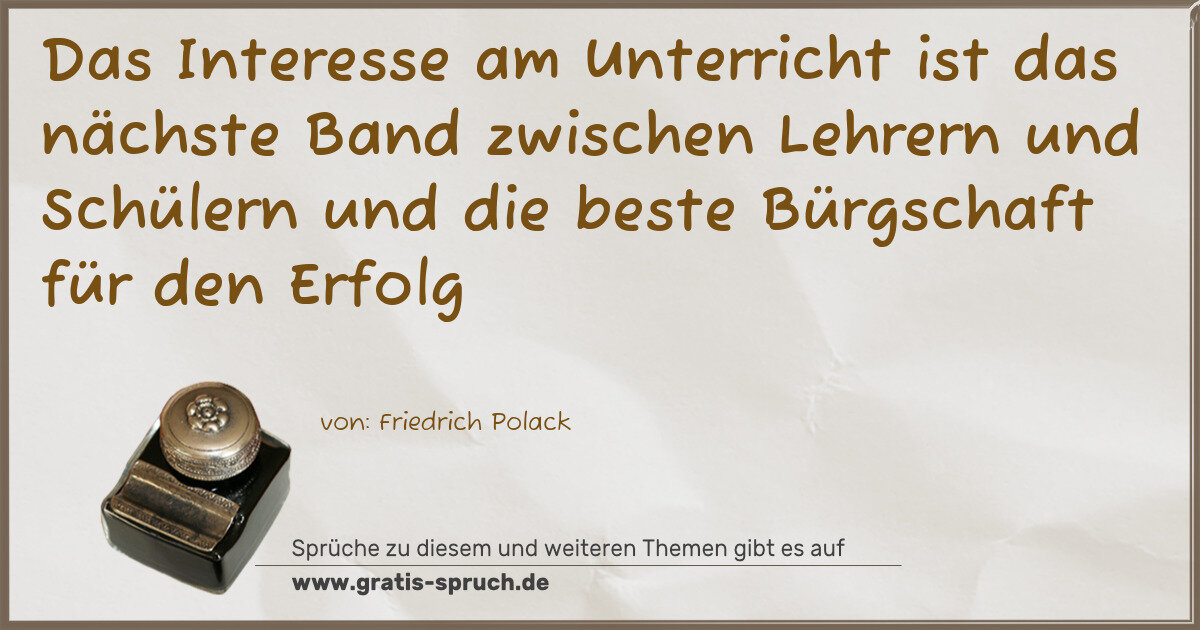 Das Interesse am Unterricht ist das nächste Band zwischen Lehrern und Schülern und die beste Bürgschaft für den Erfolg