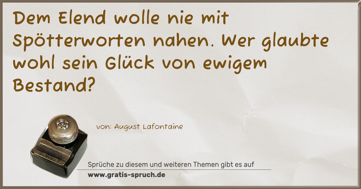Dem Elend wolle nie mit Spötterworten nahen. Wer glaubte wohl sein Glück von ewigem Bestand?