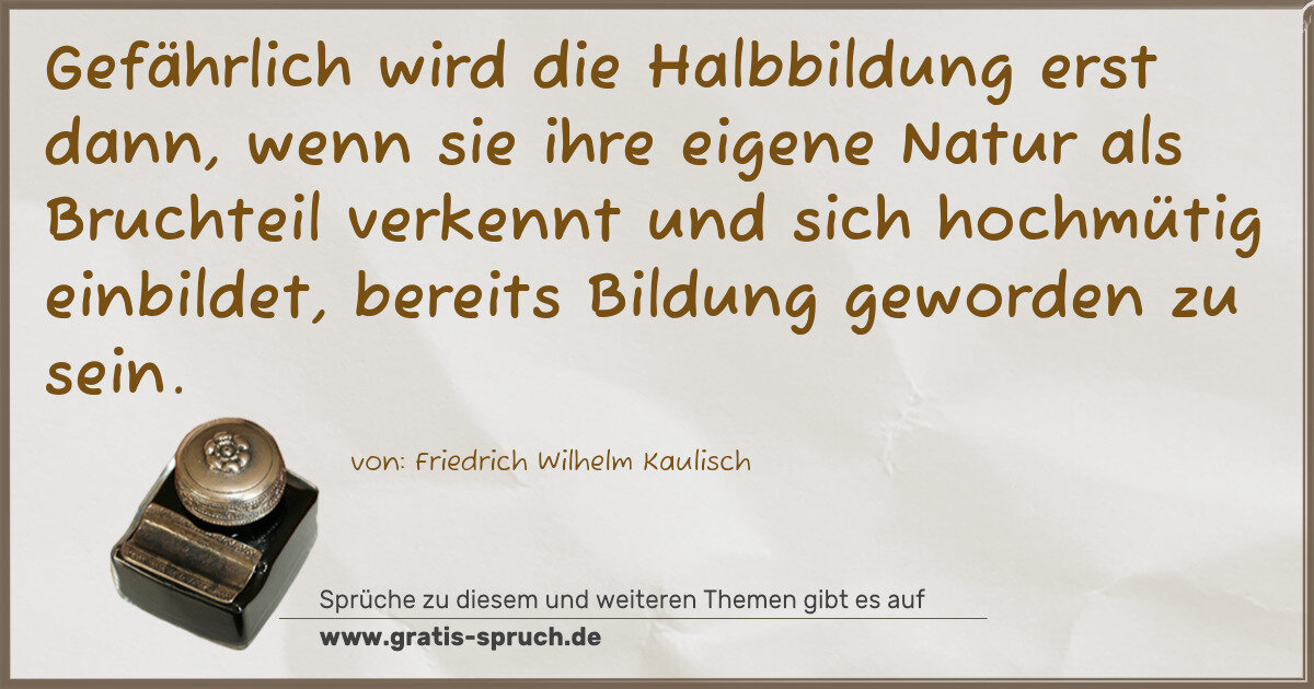 Gefährlich wird die Halbbildung erst dann, wenn sie ihre eigene Natur als Bruchteil verkennt und sich hochmütig einbildet, bereits Bildung geworden zu sein.