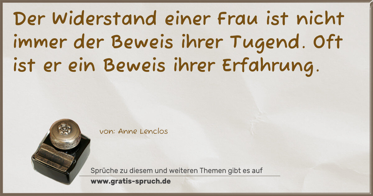 Der Widerstand einer Frau ist nicht immer der Beweis ihrer Tugend. Oft ist er ein Beweis ihrer Erfahrung.