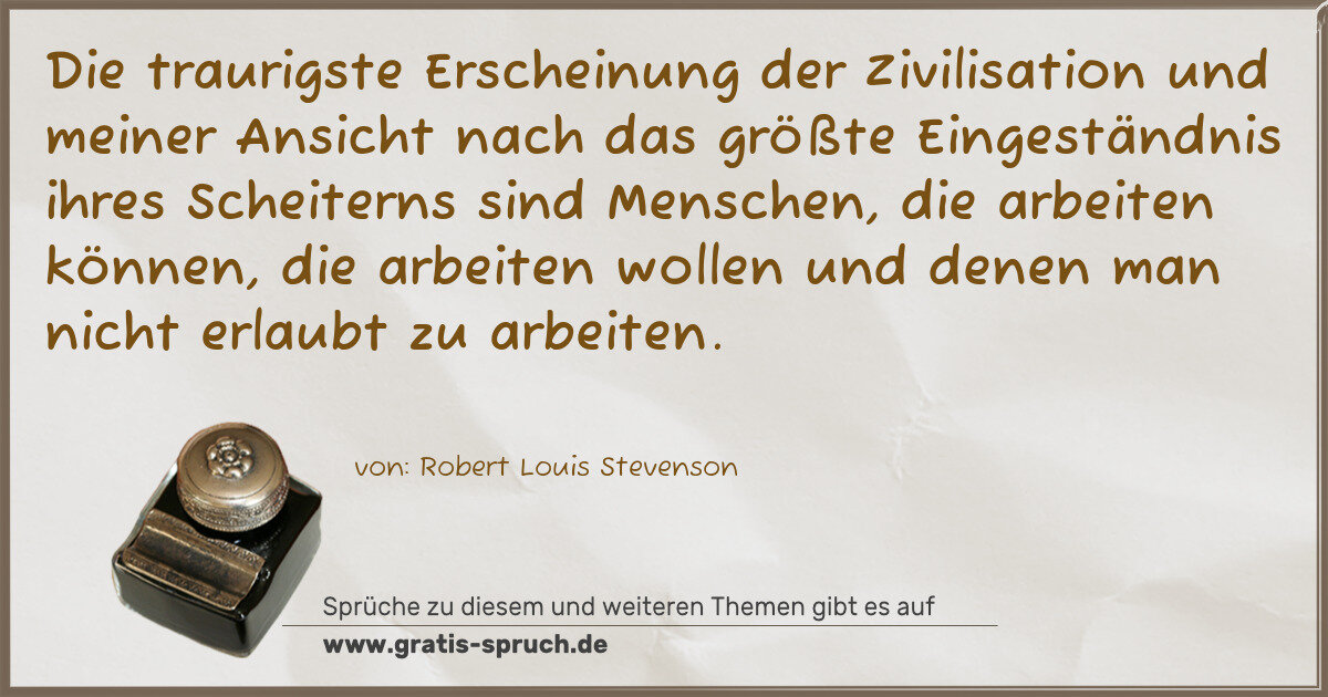Die traurigste Erscheinung der Zivilisation und meiner Ansicht nach das größte Eingeständnis ihres Scheiterns sind Menschen, die arbeiten können, die arbeiten wollen und denen man nicht erlaubt zu arbeiten.