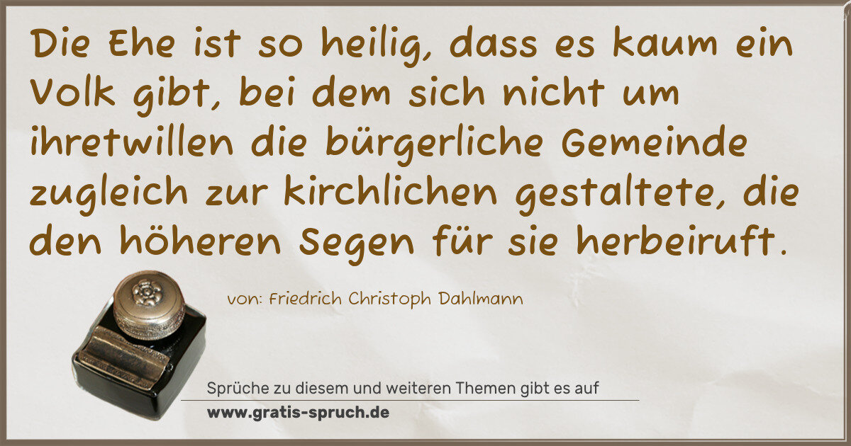 Die Ehe ist so heilig, dass es kaum ein Volk gibt, bei dem sich nicht um ihretwillen die bürgerliche Gemeinde zugleich zur kirchlichen gestaltete, die den höheren Segen für sie herbeiruft.