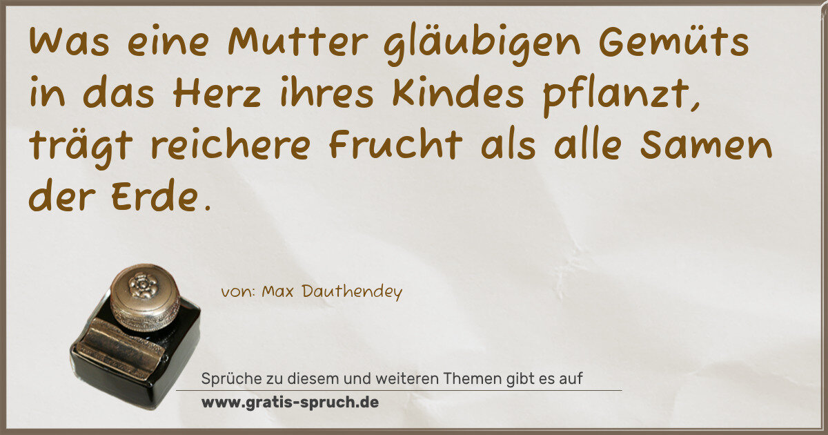 Was eine Mutter gläubigen Gemüts in das Herz ihres Kindes pflanzt, trägt reichere Frucht als alle Samen der Erde.