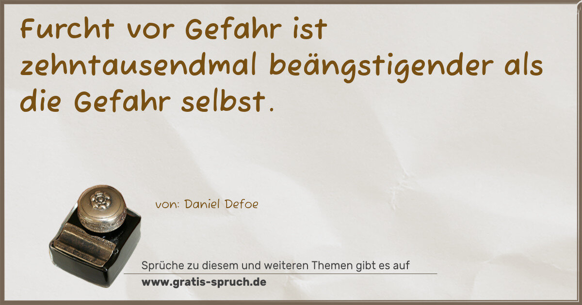 Furcht vor Gefahr ist zehntausendmal beängstigender als die Gefahr selbst.