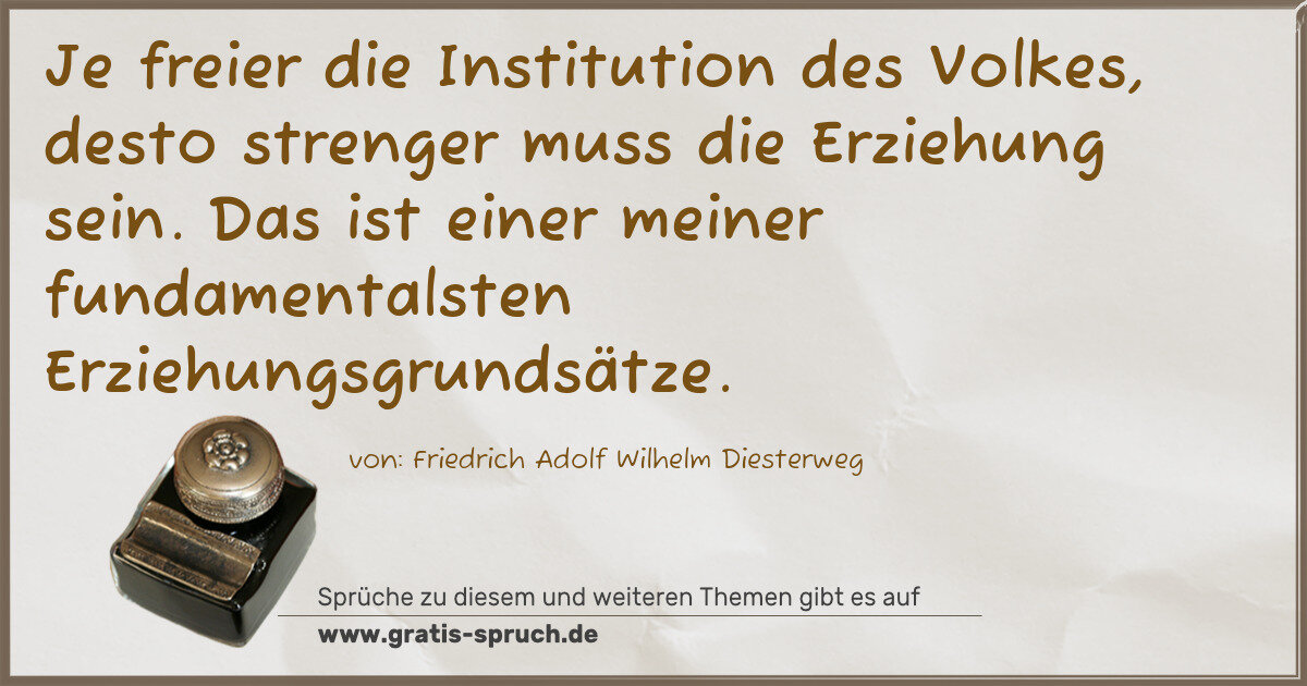 Je freier die Institution des Volkes, desto strenger muss die Erziehung sein. Das ist einer meiner fundamentalsten Erziehungsgrundsätze.