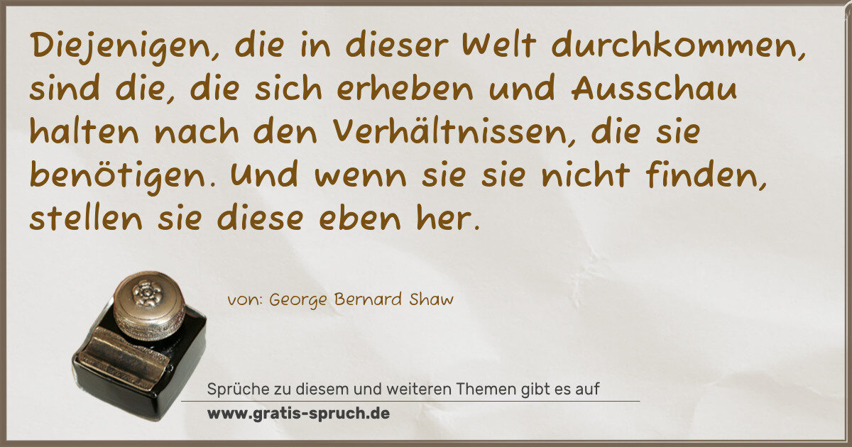 Diejenigen, die in dieser Welt durchkommen, sind die, die sich erheben und Ausschau halten nach den Verhältnissen, die sie benötigen. Und wenn sie sie nicht finden, stellen sie diese eben her.