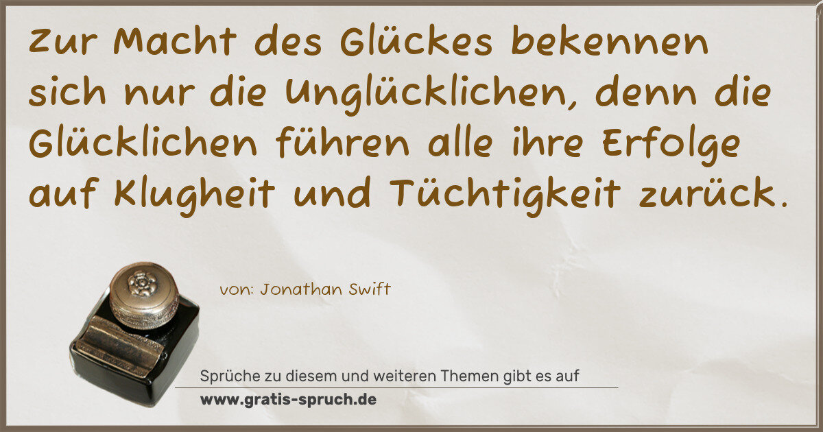 Zur Macht des Glückes bekennen sich nur die Unglücklichen, denn die Glücklichen führen alle ihre Erfolge auf Klugheit und Tüchtigkeit zurück.