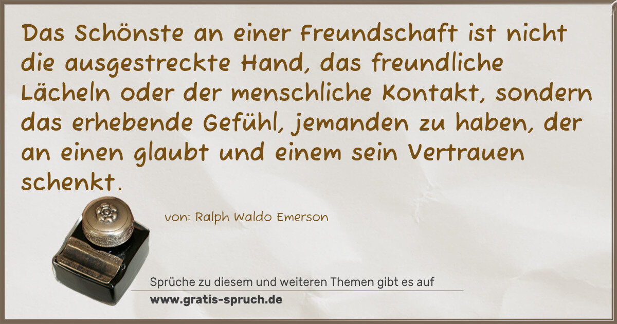 Das Schönste an einer Freundschaft ist nicht die ausgestreckte Hand, das freundliche Lächeln oder der menschliche Kontakt, sondern das erhebende Gefühl, jemanden zu haben, der an einen glaubt und einem sein Vertrauen schenkt.