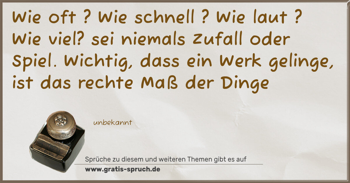 Wie oft ? Wie schnell ? Wie laut ? Wie viel? sei niemals Zufall oder Spiel. Wichtig, dass ein Werk gelinge, ist das rechte Maß der Dinge