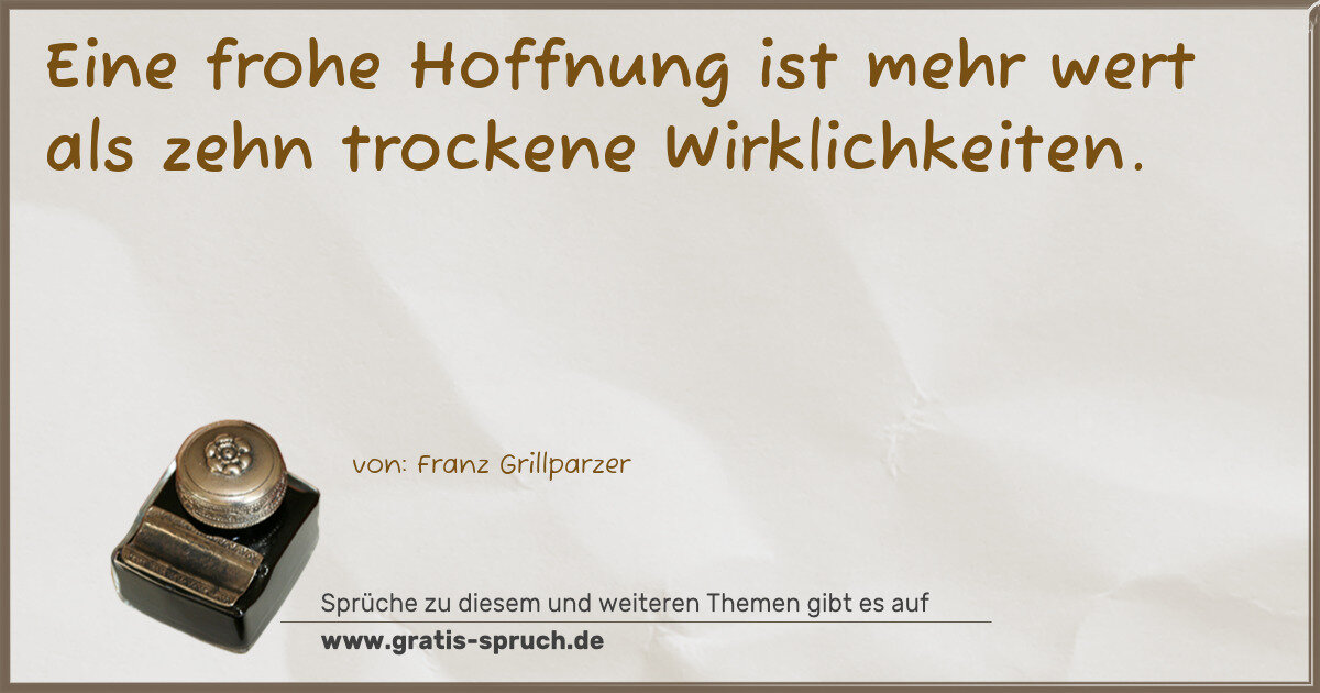 Eine frohe Hoffnung ist mehr wert als zehn trockene Wirklichkeiten.