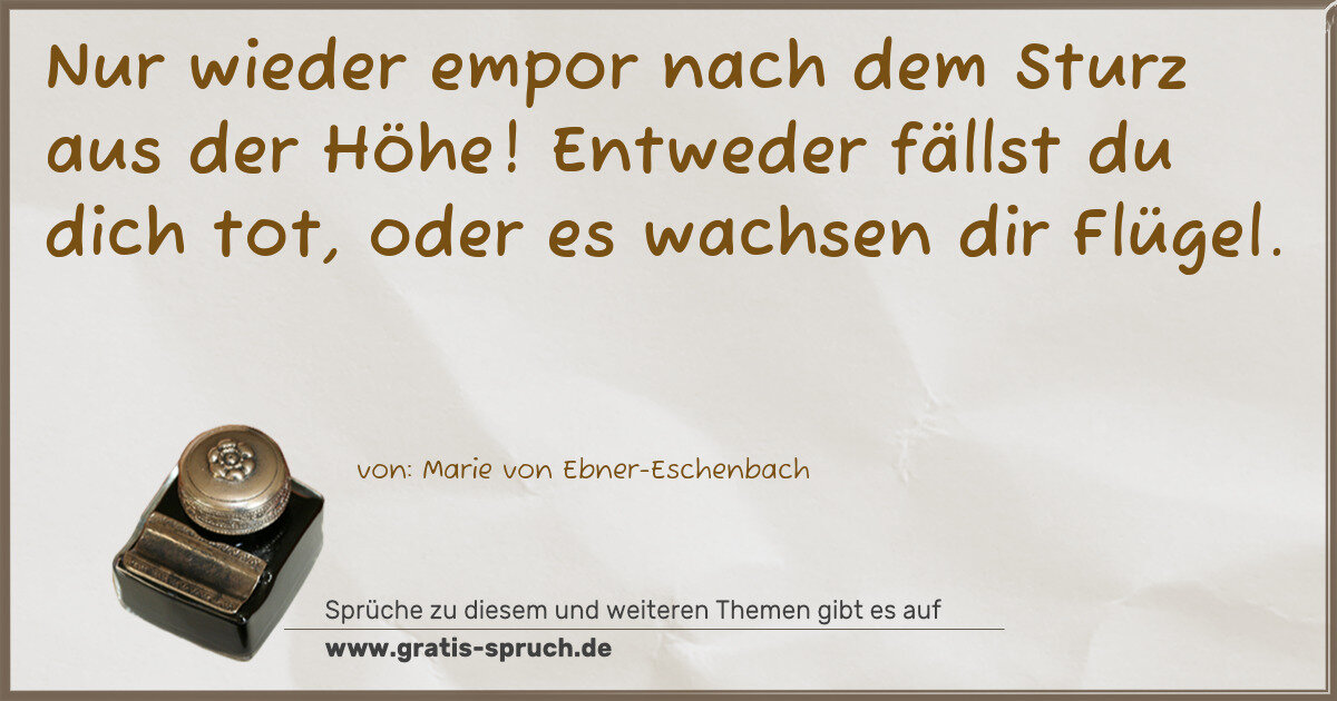 Nur wieder empor nach dem Sturz aus der Höhe! Entweder fällst du dich tot, oder es wachsen dir Flügel.
