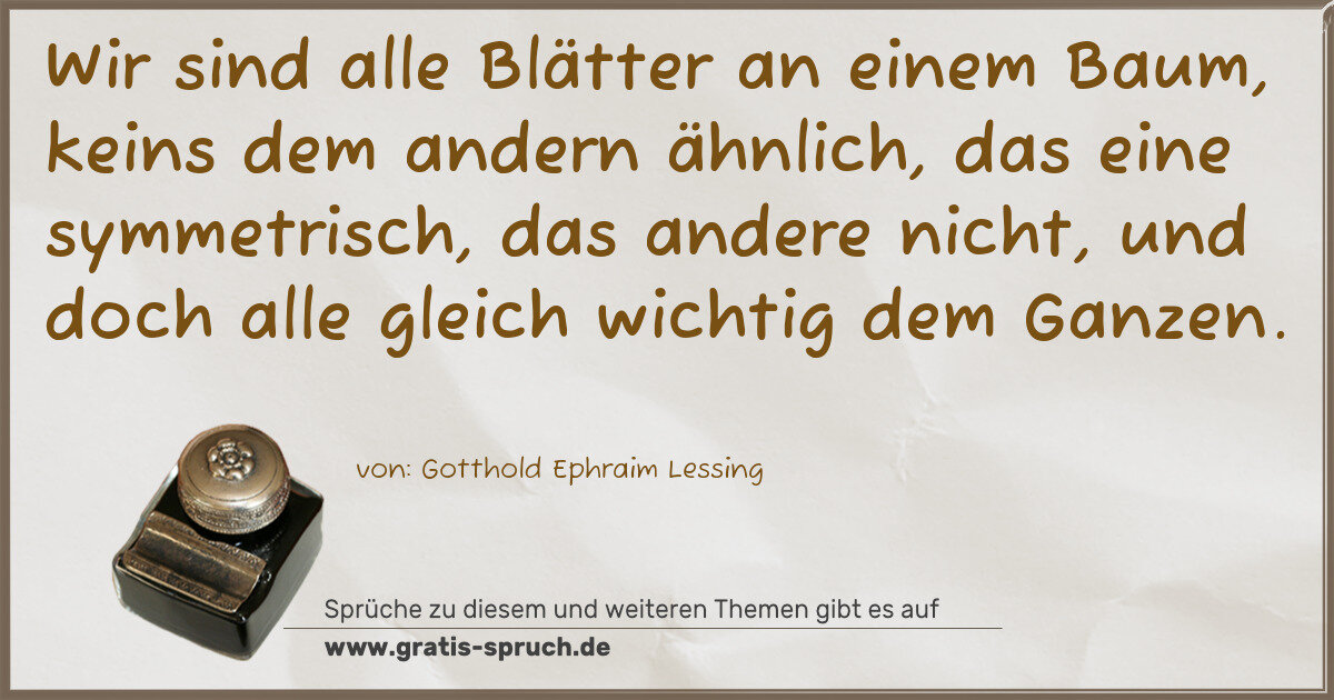 Wir sind alle Blätter an einem Baum, keins dem andern ähnlich, das eine symmetrisch, das andere nicht, und doch alle gleich wichtig dem Ganzen.