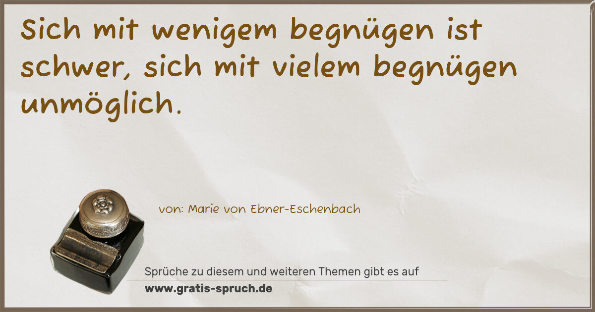Sich mit wenigem begnügen ist schwer, sich mit vielem begnügen unmöglich.