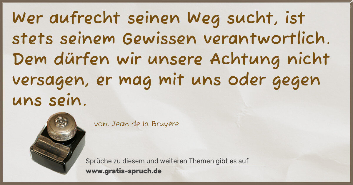 Wer aufrecht seinen Weg sucht, ist stets seinem Gewissen verantwortlich. Dem dürfen wir unsere Achtung nicht versagen, er mag mit uns oder gegen uns sein.