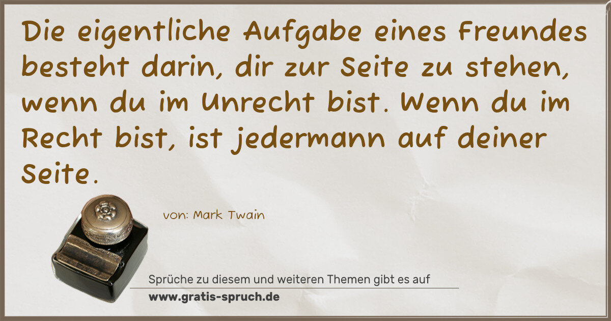 Die eigentliche Aufgabe eines Freundes besteht darin, dir zur Seite zu stehen, wenn du im Unrecht bist. Wenn du im Recht bist, ist jedermann auf deiner Seite.