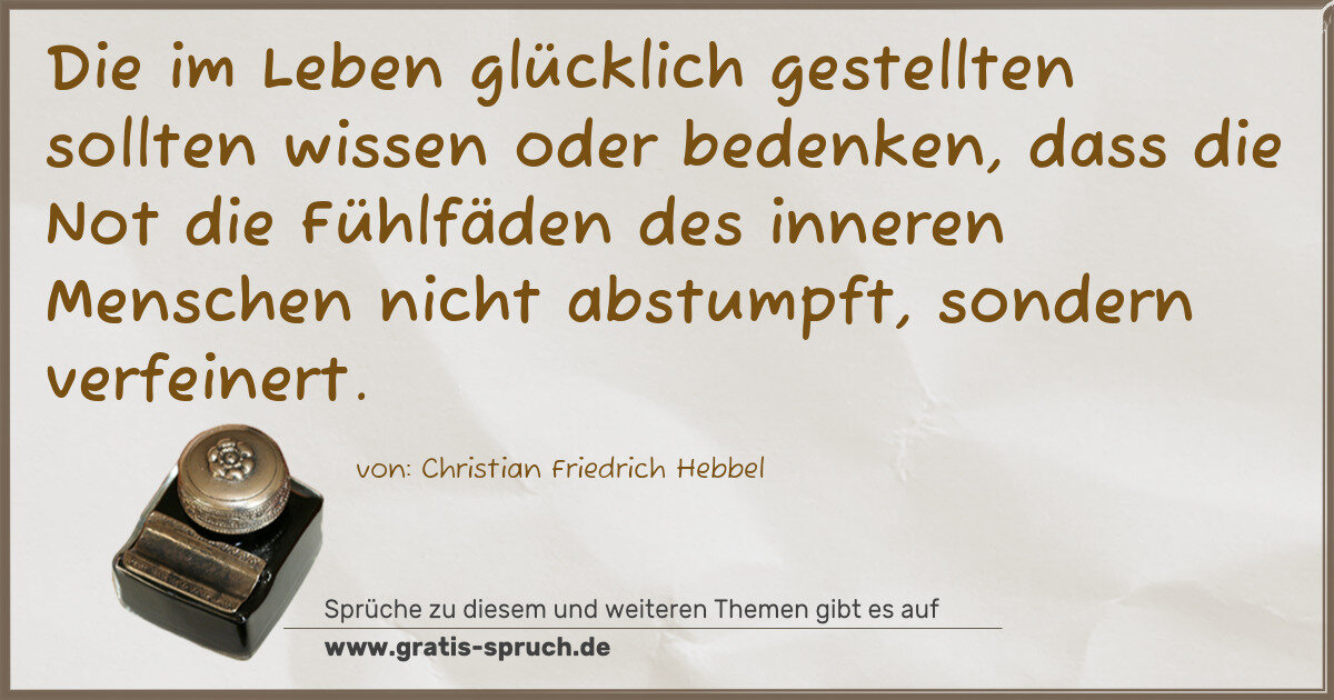 Die im Leben glücklich gestellten sollten wissen oder bedenken, dass die Not die Fühlfäden des inneren Menschen nicht abstumpft, sondern verfeinert.