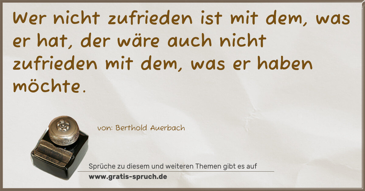 Wer nicht zufrieden ist mit dem, was er hat, der wäre auch nicht zufrieden mit dem, was er haben möchte.