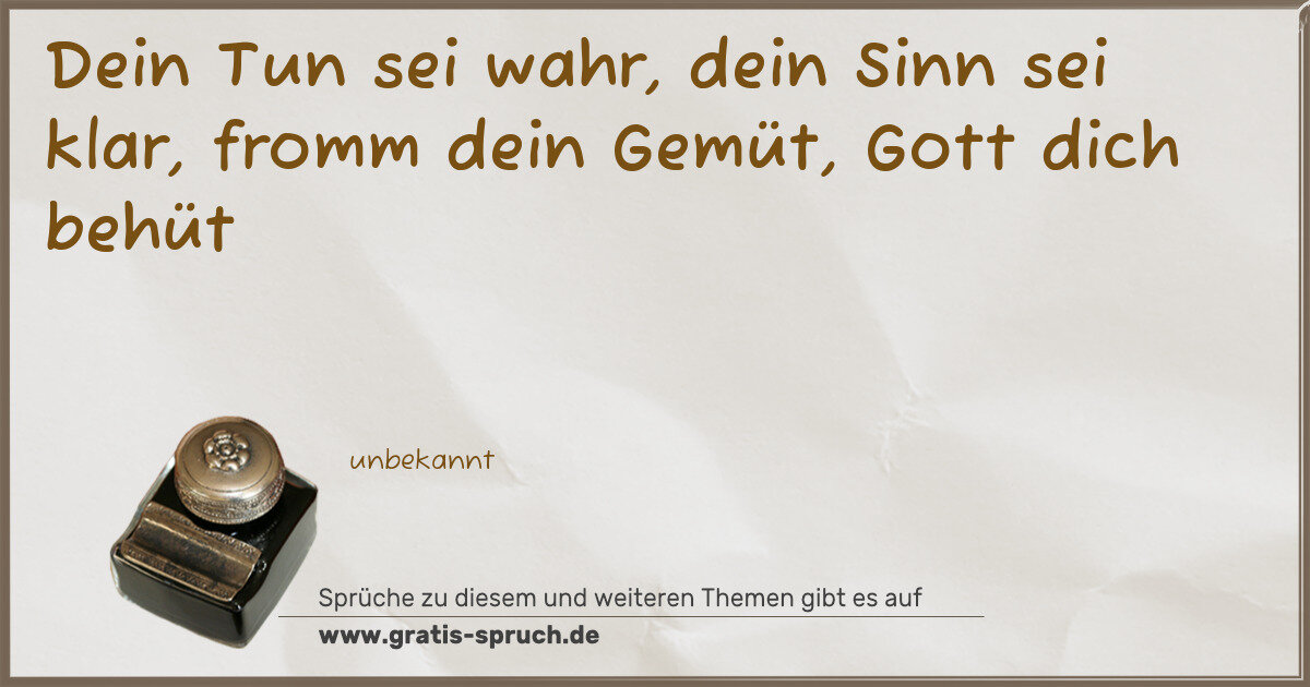 Dein Tun sei wahr, dein Sinn sei klar, fromm dein Gemüt, Gott dich behüt