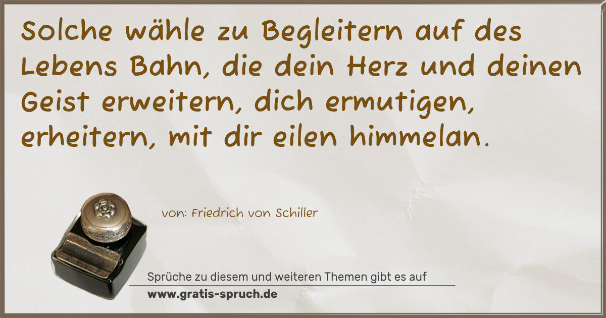Solche wähle zu Begleitern auf des Lebens Bahn, die dein Herz und deinen Geist erweitern, dich ermutigen, erheitern, mit dir eilen himmelan.