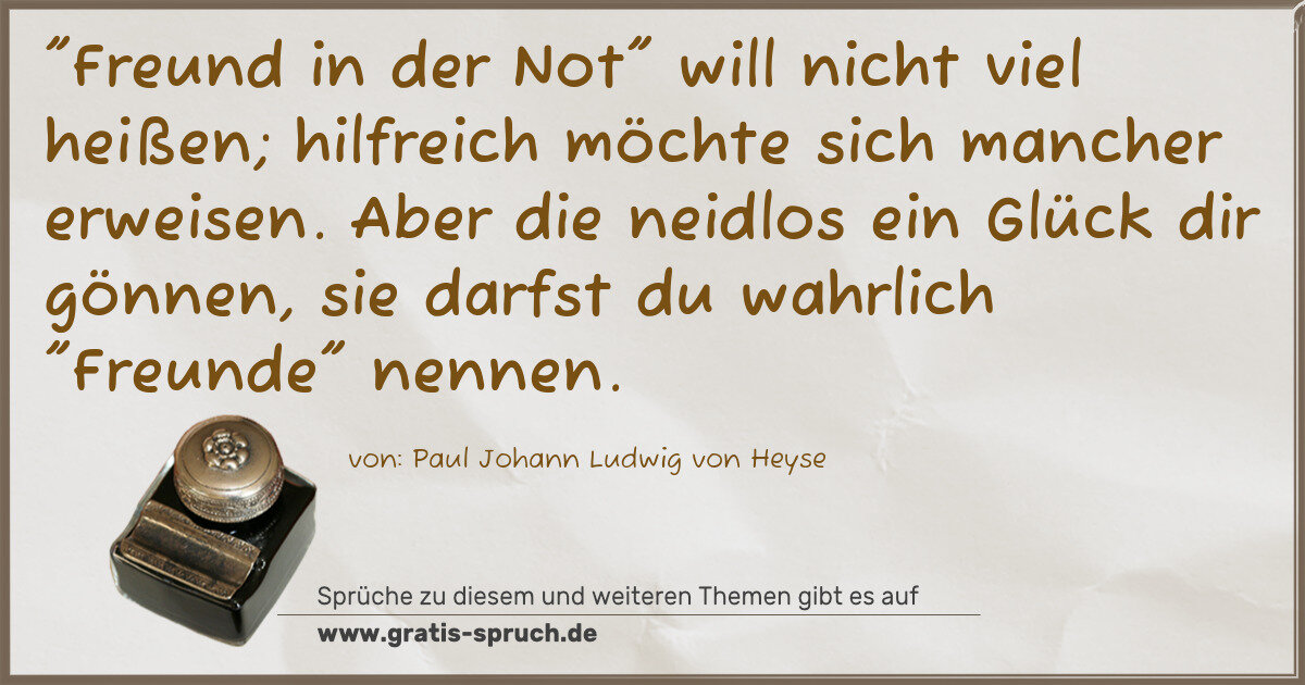 "Freund in der Not" will nicht viel heißen; hilfreich möchte sich mancher erweisen. Aber die neidlos ein Glück dir gönnen, sie darfst du wahrlich "Freunde" nennen.