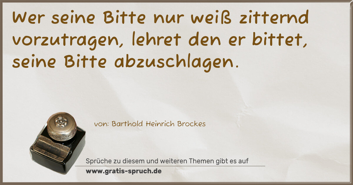 Wer seine Bitte nur weiß zitternd vorzutragen, lehret den er bittet, seine Bitte abzuschlagen.