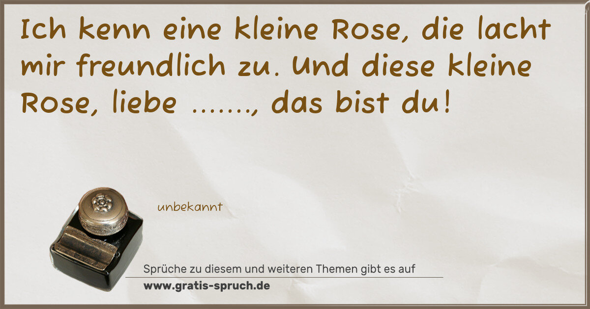 Ich kenn eine kleine Rose, die lacht mir freundlich zu. Und diese kleine Rose, liebe ......., das bist du!