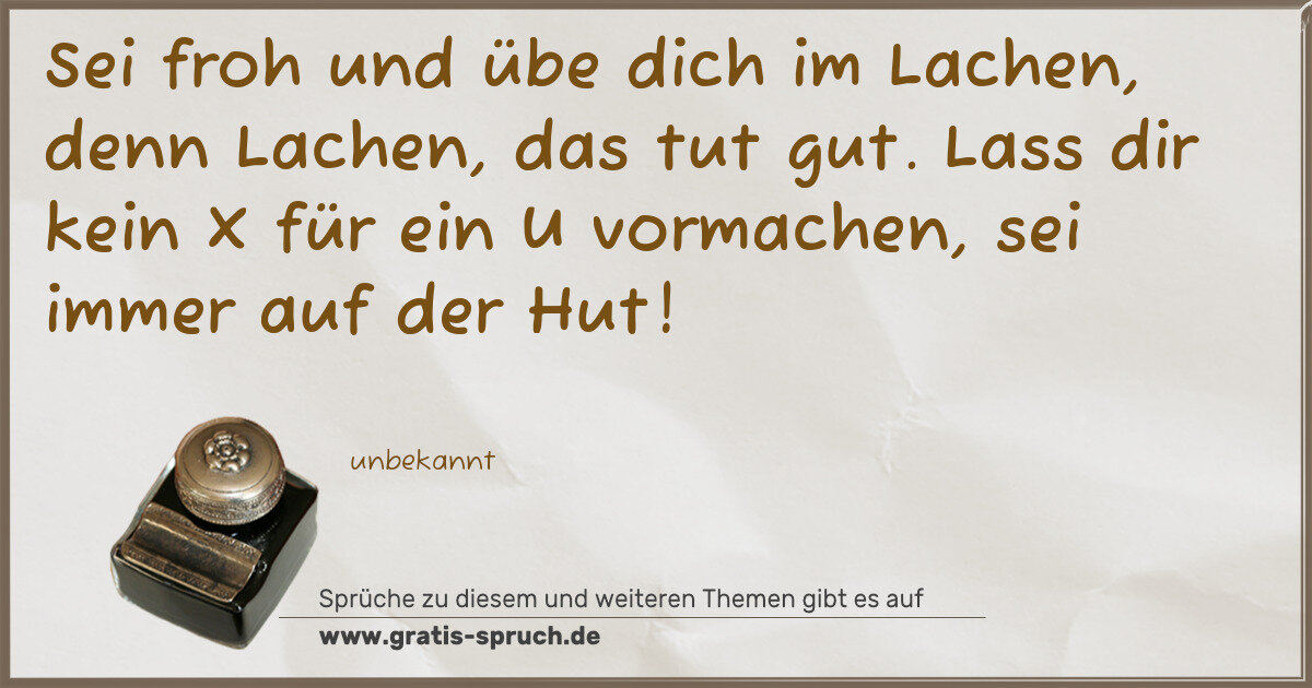 Sei froh und übe dich im Lachen, denn Lachen, das tut gut. Lass dir kein X für ein U vormachen, sei immer auf der Hut!