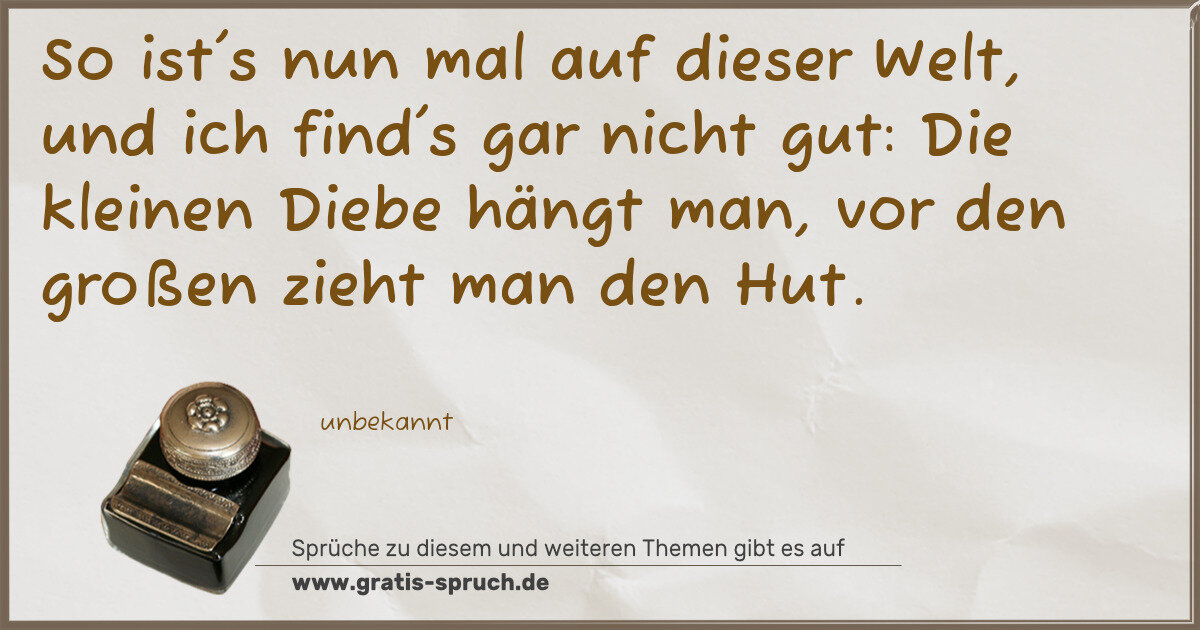 So ist's nun mal auf dieser Welt, und ich find's gar nicht gut: Die kleinen Diebe hängt man, vor den großen zieht man den Hut.