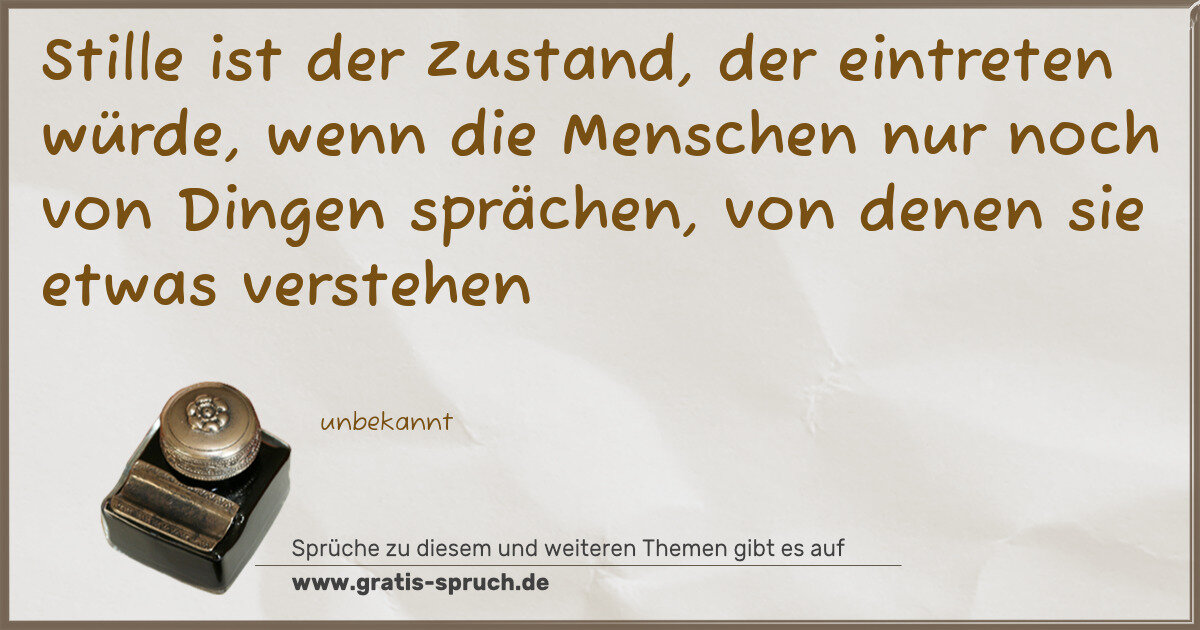 Stille ist der Zustand, der eintreten würde, wenn die Menschen nur noch von Dingen sprächen, von denen sie etwas verstehen