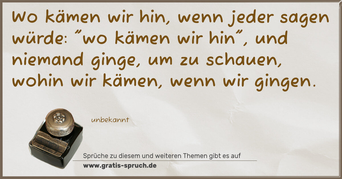 Wo kämen wir hin, wenn jeder sagen würde: "wo kämen wir hin", und niemand ginge, um zu schauen, wohin wir kämen, wenn wir gingen.