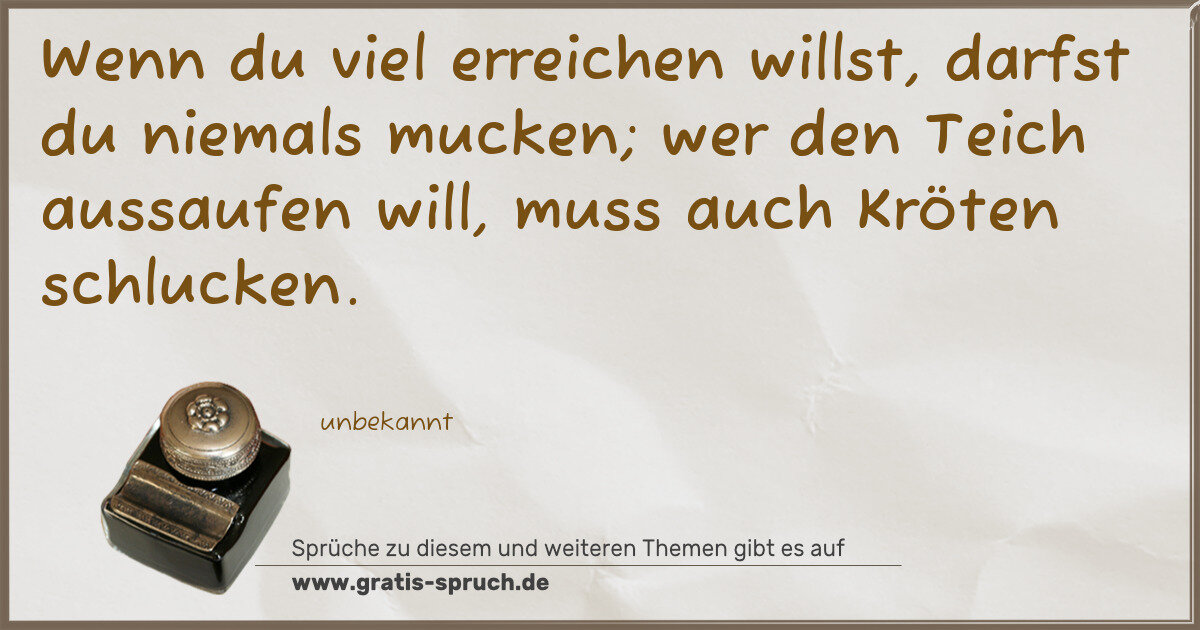 Wenn du viel erreichen willst, darfst du niemals mucken; wer den Teich aussaufen will, muss auch Kröten schlucken.