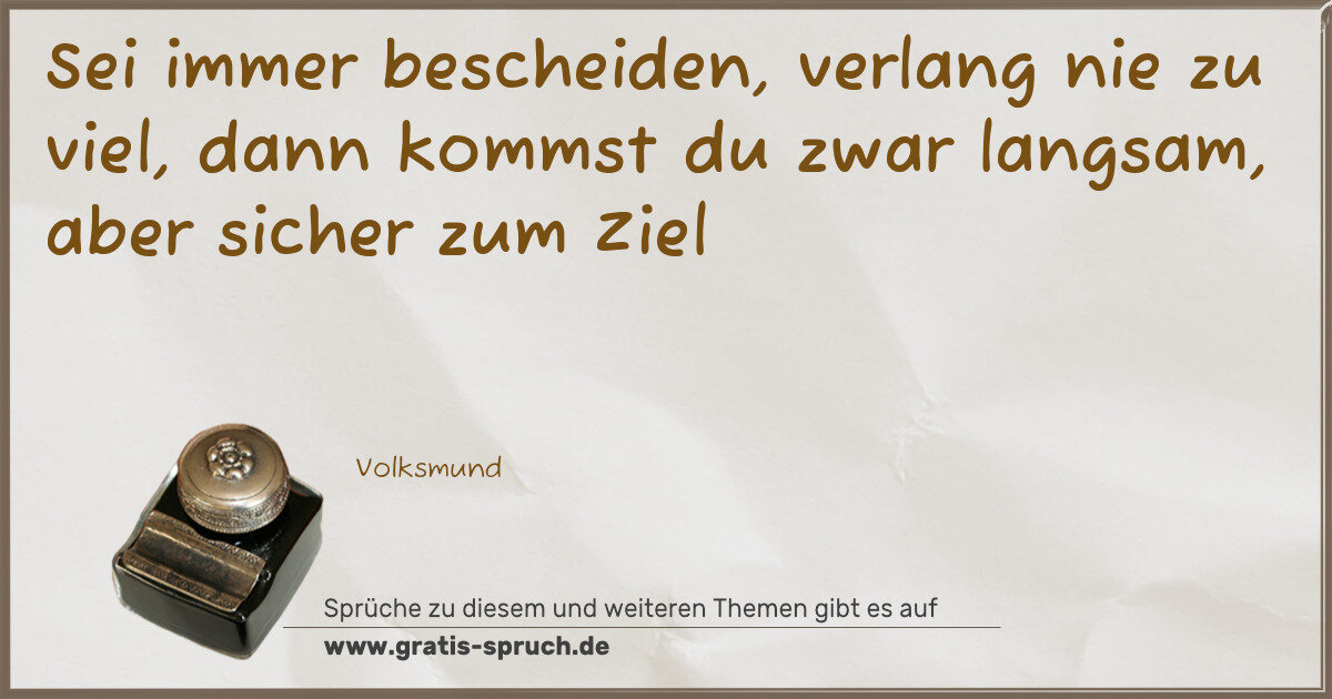 Sei immer bescheiden, verlang nie zu viel, dann kommst du zwar langsam, aber sicher zum Ziel