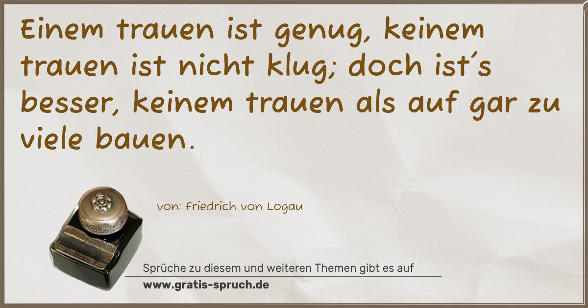 Einem trauen ist genug, keinem trauen ist nicht klug; doch ist's besser, keinem trauen als auf gar zu viele bauen.