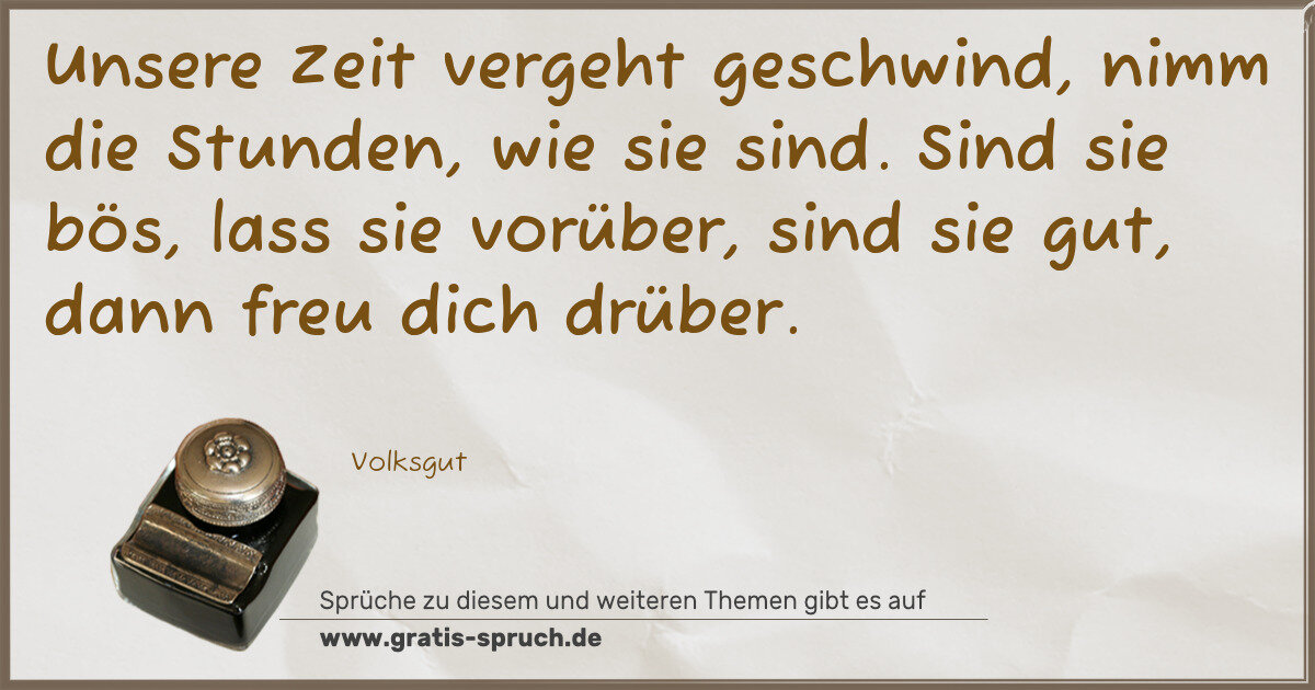 Unsere Zeit vergeht geschwind, nimm die Stunden, wie sie sind. Sind sie bös, lass sie vorüber, sind sie gut, dann freu dich drüber.