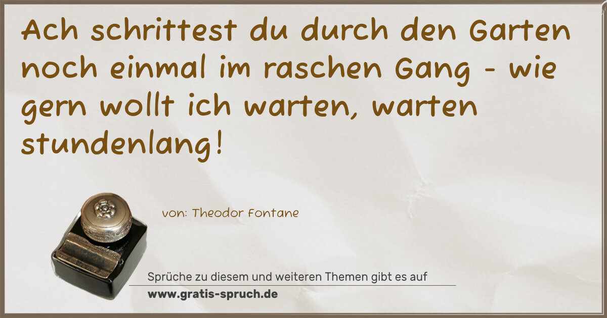 Ach schrittest du durch den Garten noch einmal im raschen Gang - wie gern wollt ich warten, warten stundenlang!