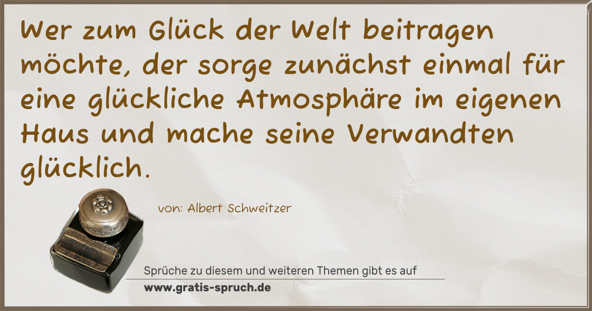 Wer zum Glück der Welt beitragen möchte, der sorge zunächst einmal für eine glückliche Atmosphäre im eigenen Haus und mache seine Verwandten glücklich.