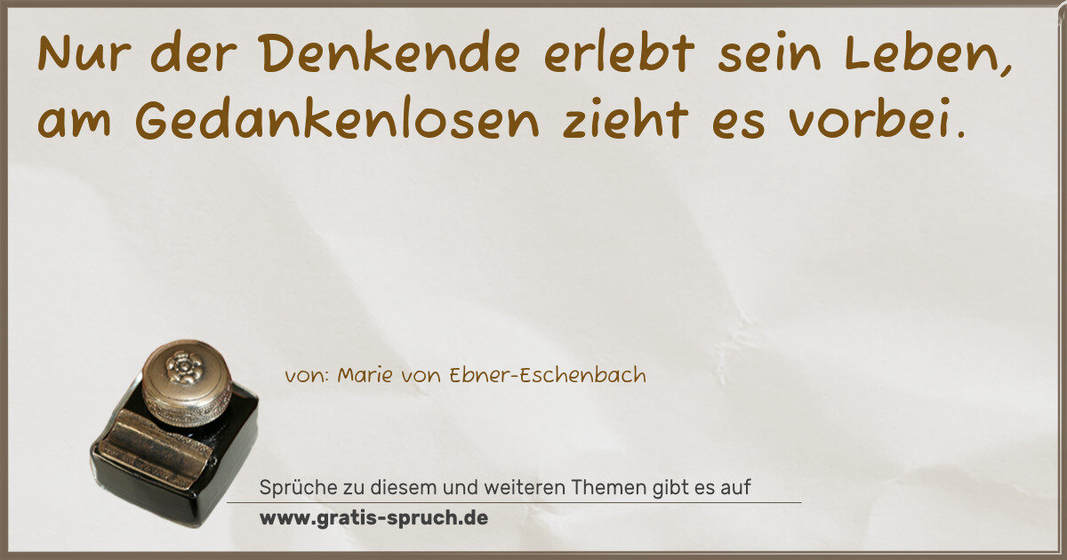 Nur der Denkende erlebt sein Leben, am Gedankenlosen zieht es vorbei.