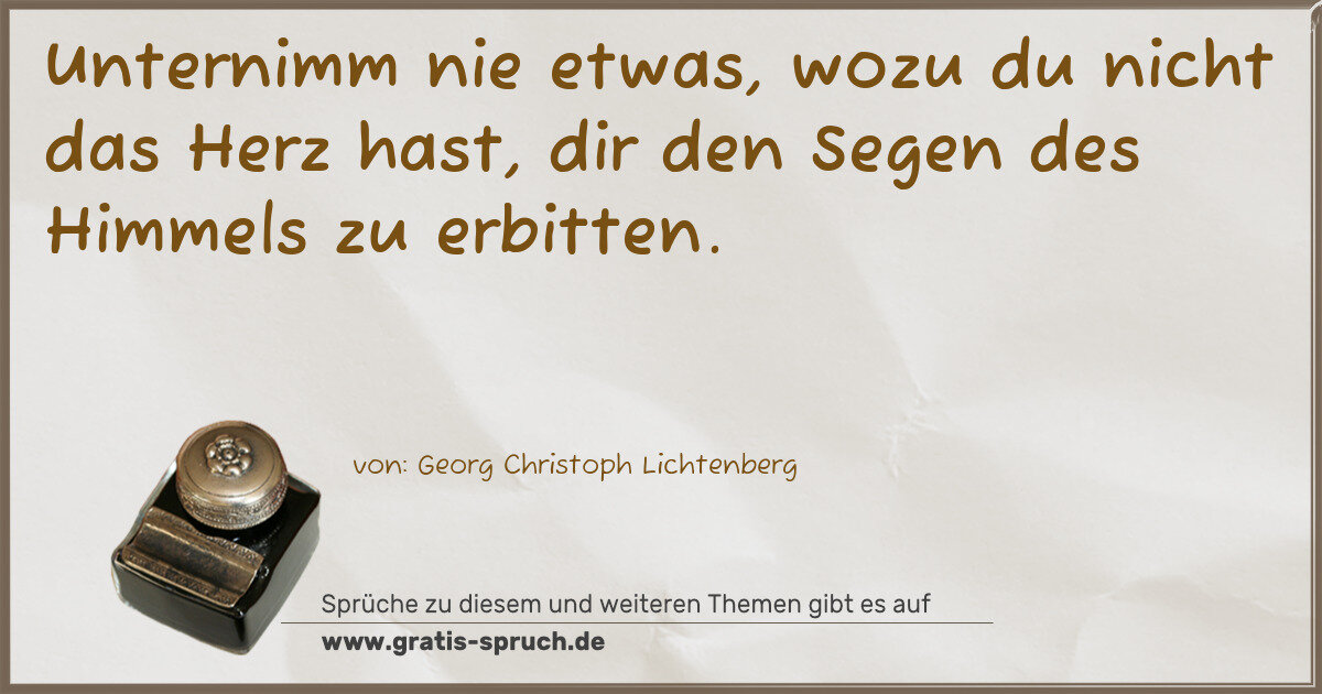 Unternimm nie etwas, wozu du nicht das Herz hast, dir den Segen des Himmels zu erbitten.