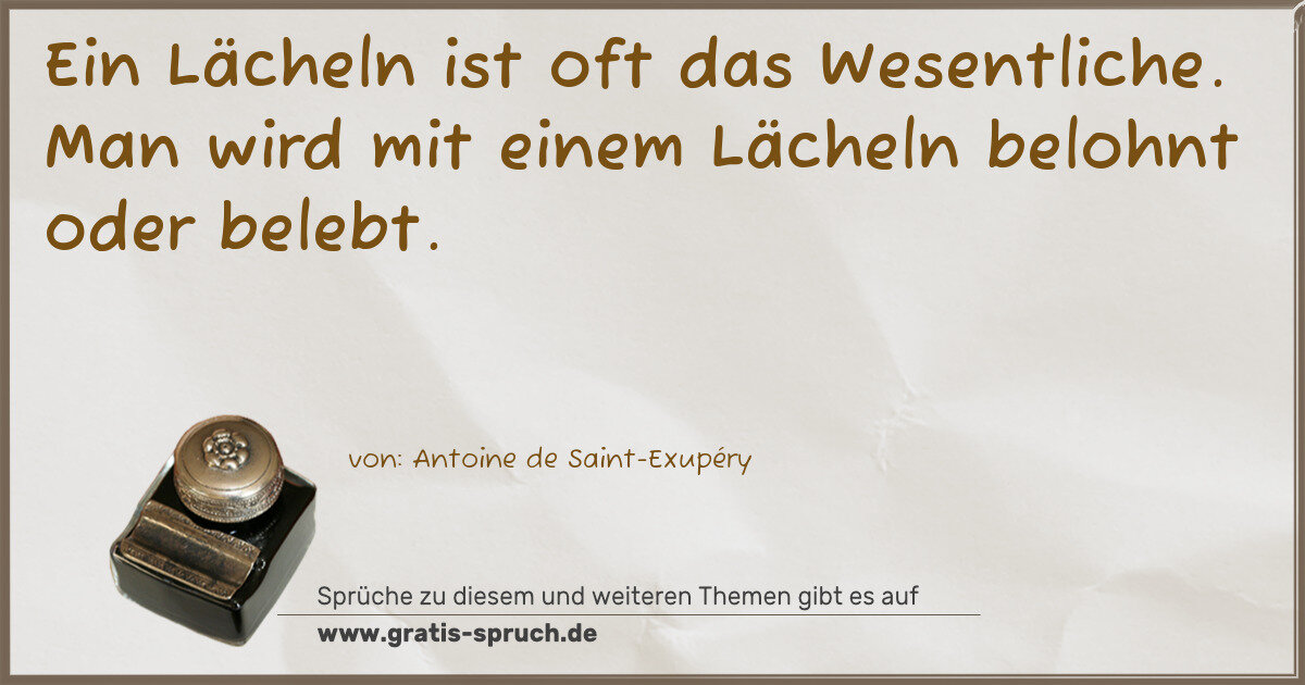 Ein Lächeln ist oft das Wesentliche. Man wird mit einem Lächeln belohnt oder belebt.