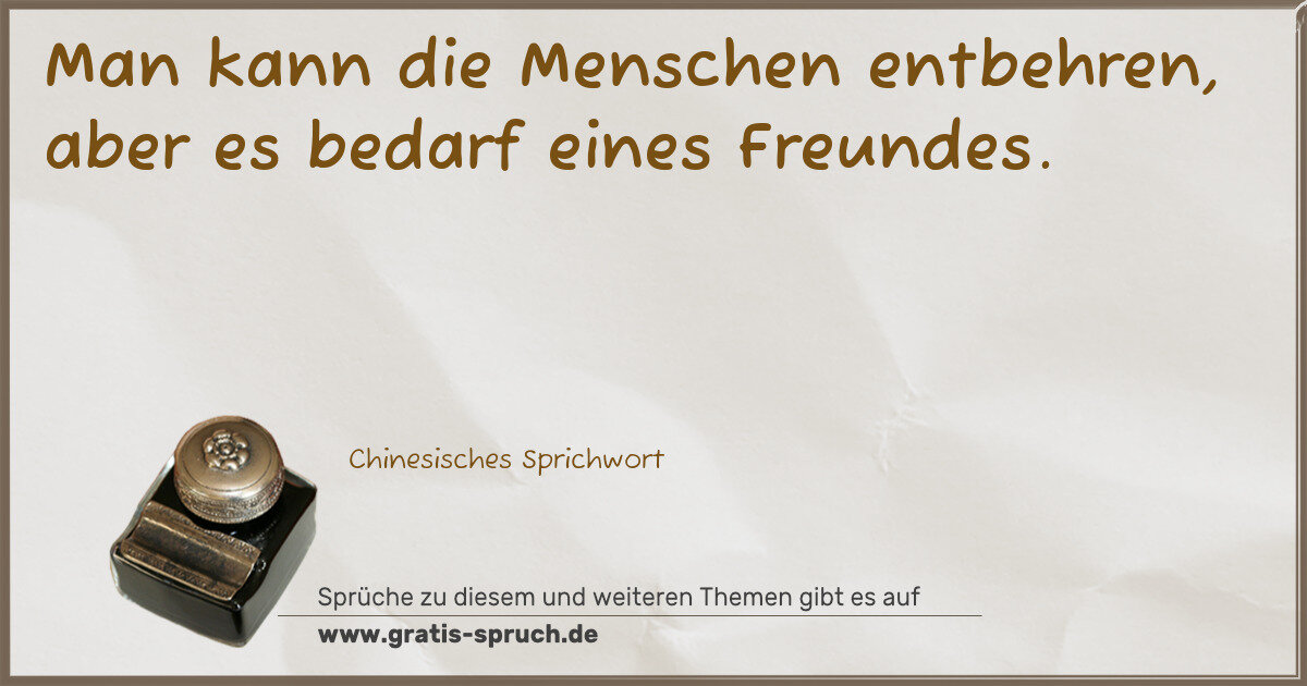 Man kann die Menschen entbehren, aber es bedarf eines Freundes.
