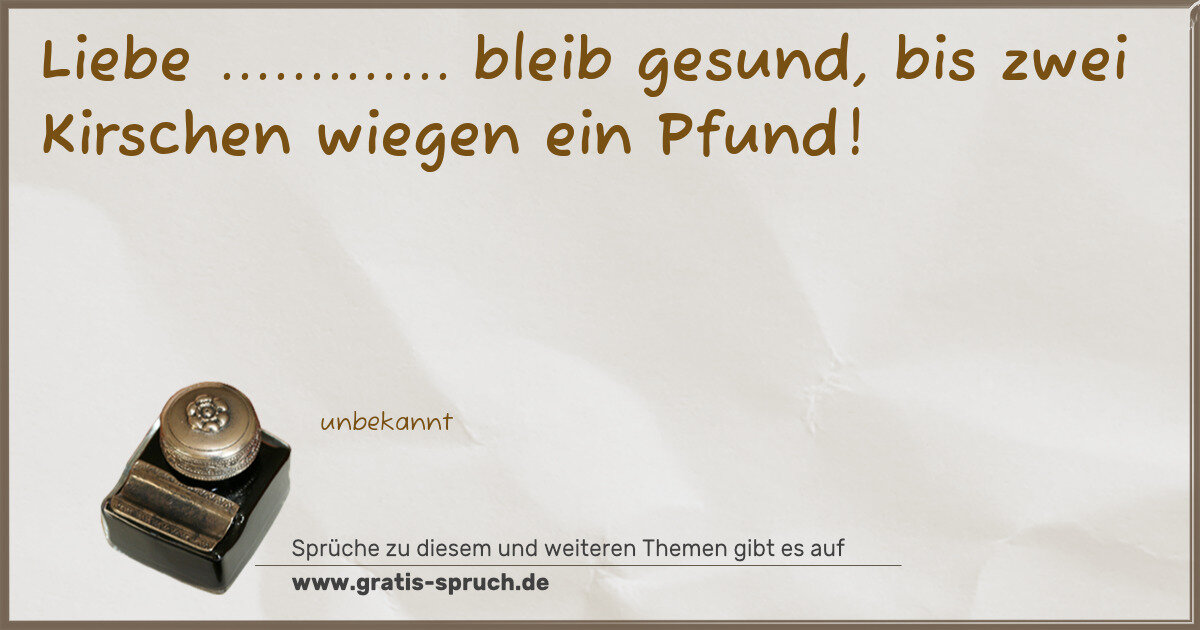 Liebe ............. bleib gesund, bis zwei Kirschen wiegen ein Pfund!