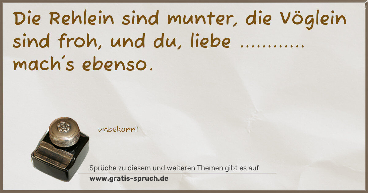 Die Rehlein sind munter, die Vöglein sind froh, und du, liebe ............ mach's ebenso.
