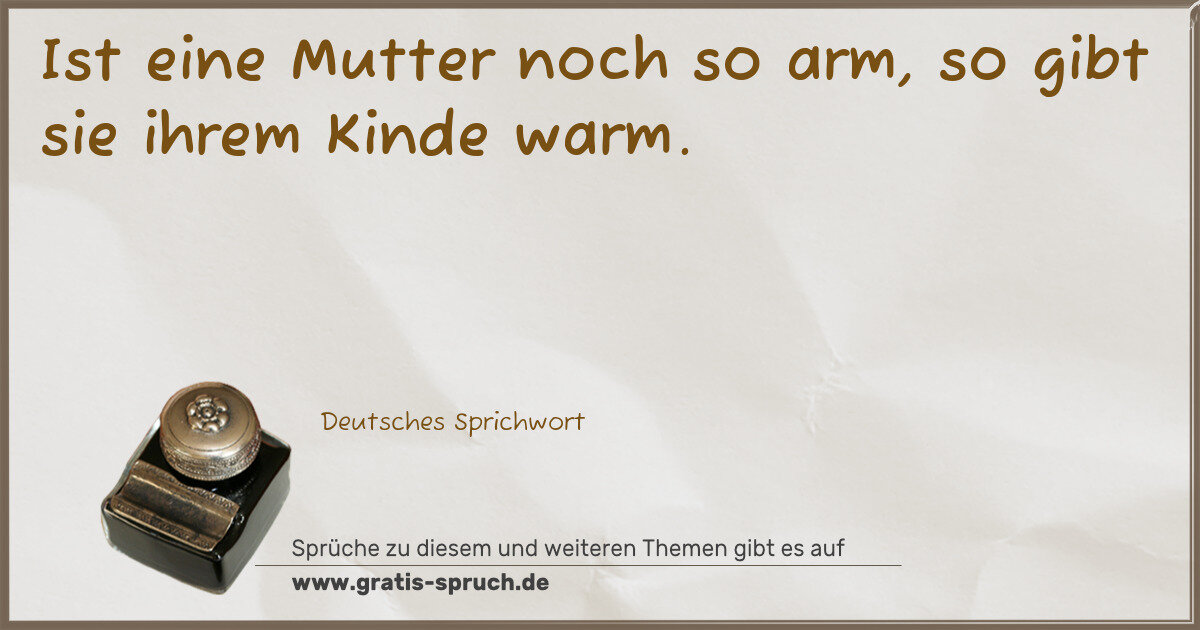 Ist eine Mutter noch so arm, so gibt sie ihrem Kinde warm.