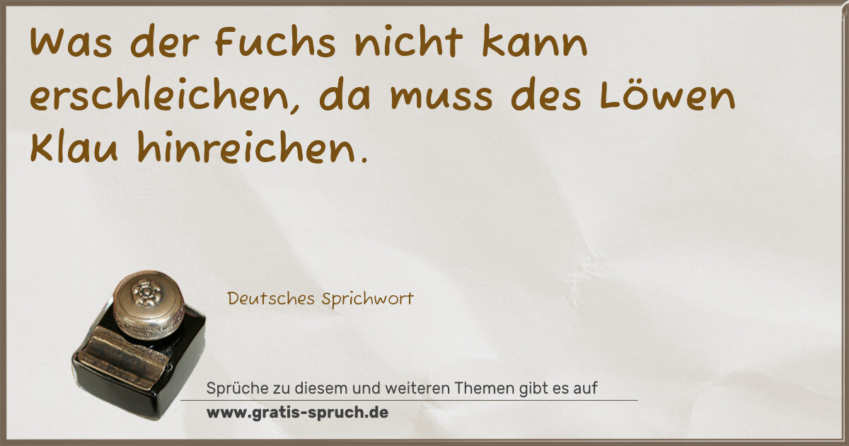 Was der Fuchs nicht kann erschleichen, da muss des Löwen Klau hinreichen.