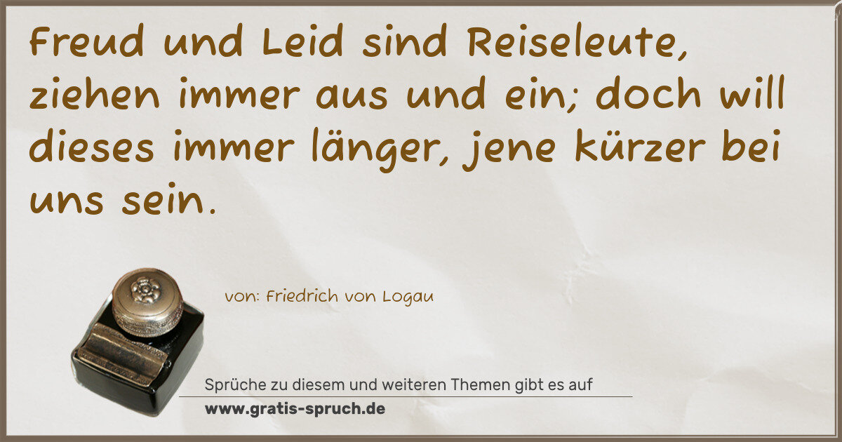 Freud und Leid sind Reiseleute, ziehen immer aus und ein; doch will dieses immer länger, jene kürzer bei uns sein.