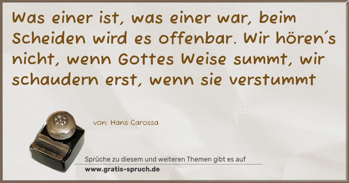 Was einer ist, was einer war, beim Scheiden wird es offenbar. Wir hören's nicht, wenn Gottes Weise summt, wir schaudern erst, wenn sie verstummt